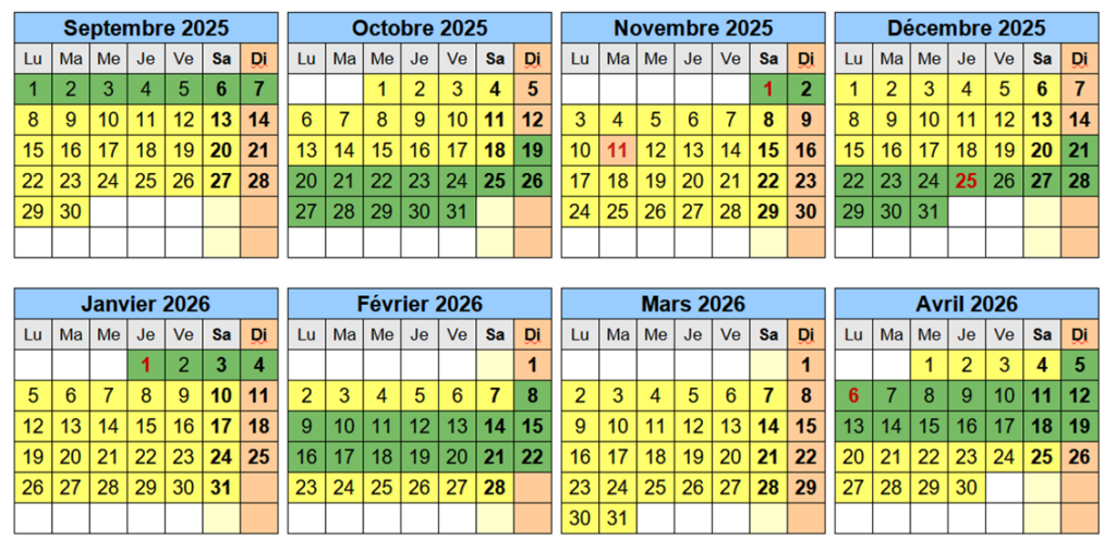 Calendrier 2025-2026